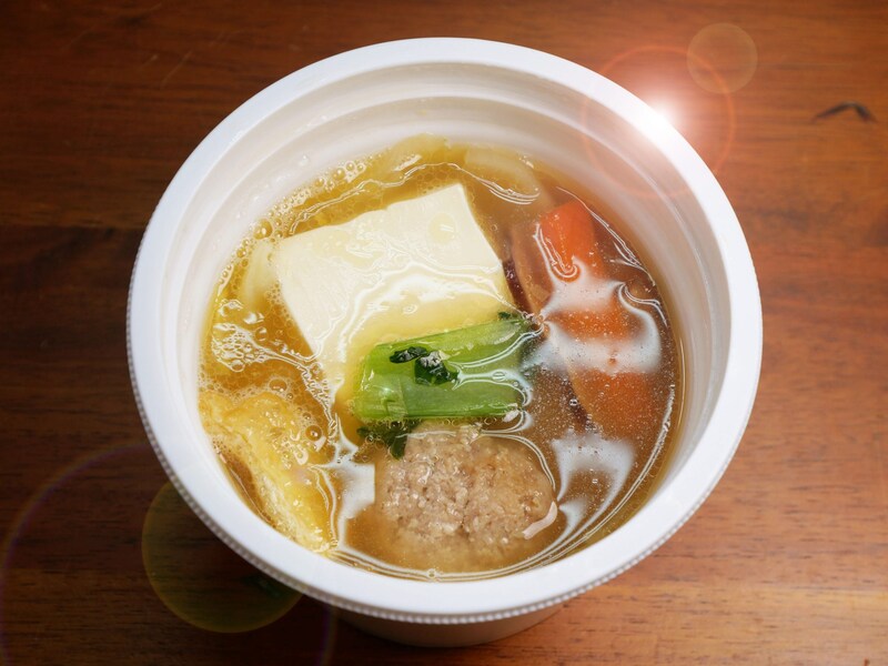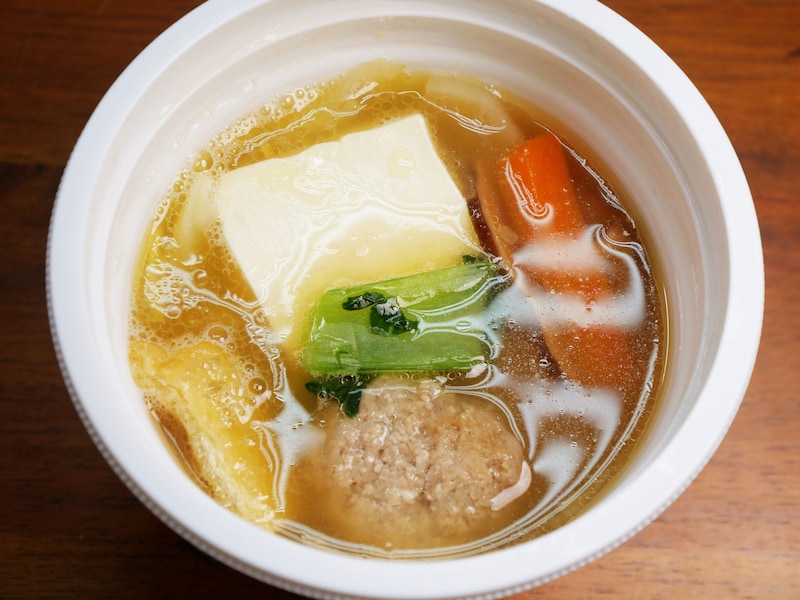 まず最初に、スープ本来のおいしさを楽しむため、おにぎりを入れずに食べてみたのだが、これがもうステキ。野菜由来の旨味と甘味をしっかり深く感じられるステキなスープに仕上がっていた。
