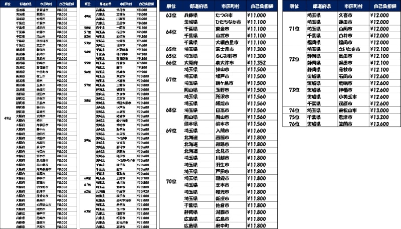 人口5万人以上の549自治体を対象にした自己負担額ランキング