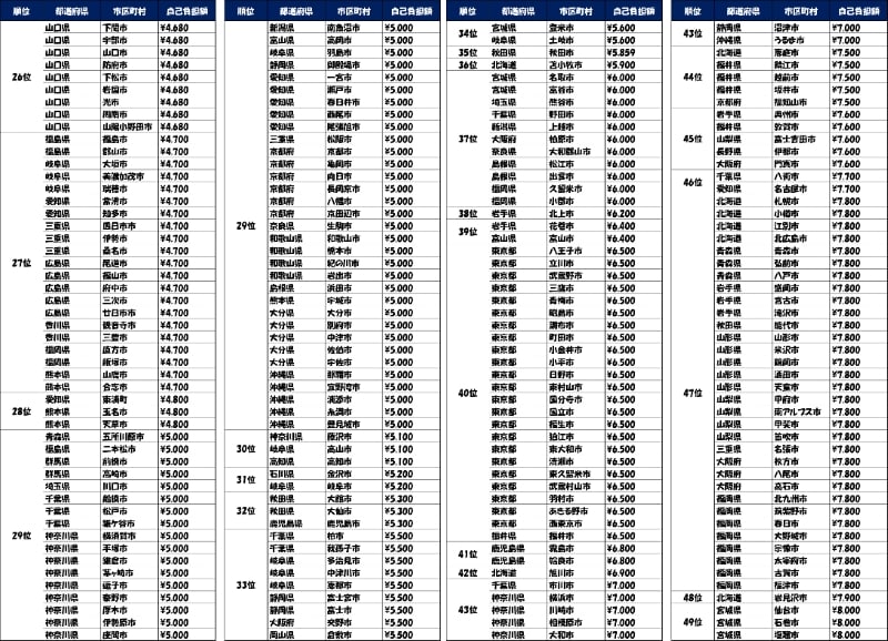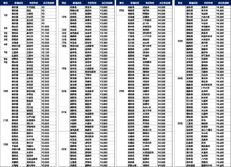 自分の住んでいる自治体ではどの程度の負担が必要なのか。
