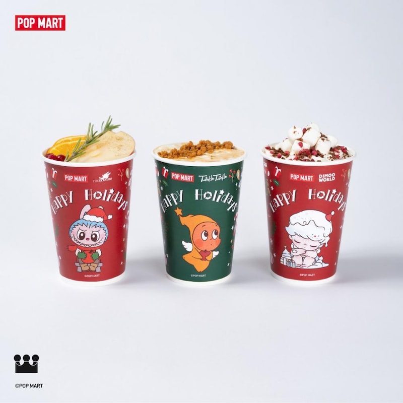 日本初となるPOP MARTのドリンクカーも登場します。ホリデー気分を盛り上げる季節限定ホットドリンクを、Twinkle Twinkle、LABUBU、DIMOOのデザインが施されたカップで楽しめます。価格は各880円です。