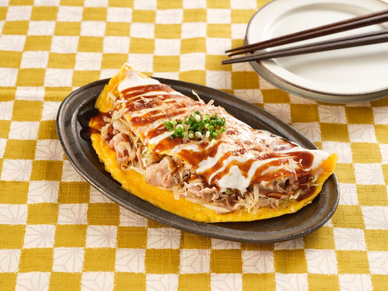 - フライパンで溶き卵を広げ、1の具材を包むように折りたたむ。