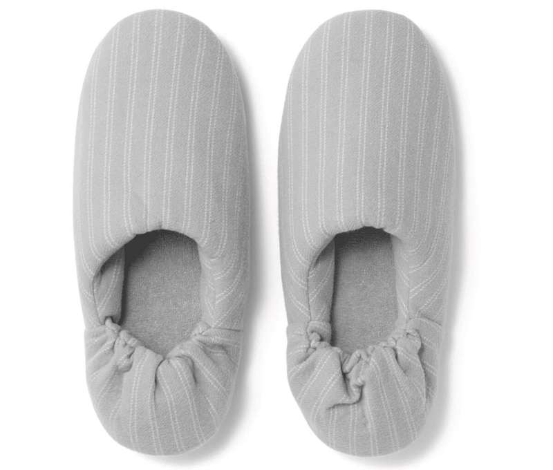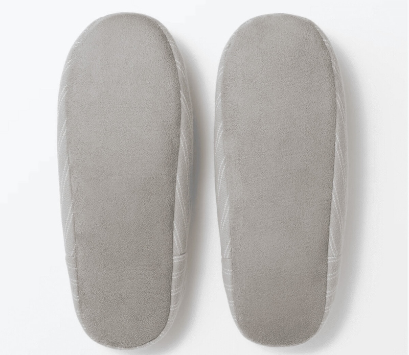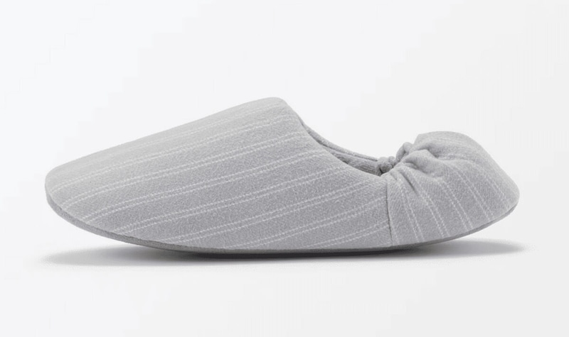 無印良品の「綿フランネル かかとにフィットするルームシューズ」は肌に触れる内側に綿100%素材を使用し、季節を問わず快適に履ける一足です。