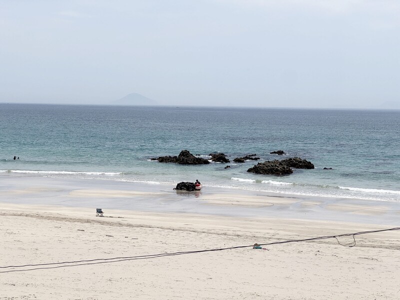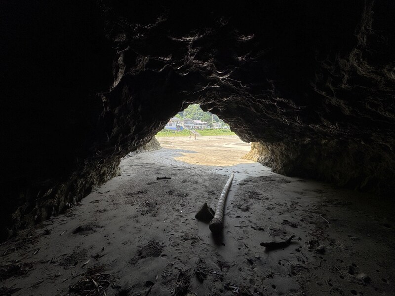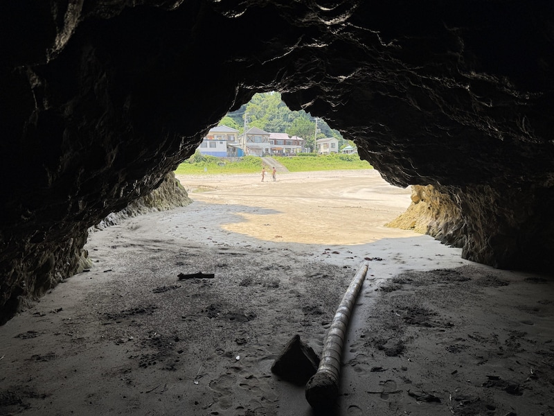 入田浜の海はとても美しくブルーに輝いている。砂浜でマッタリできるだけでなく、奇岩や洞穴もあり、そこにいるだけで飽きることがないビーチ。日本人もいるが、西洋からの観光客が多い印象を受ける。