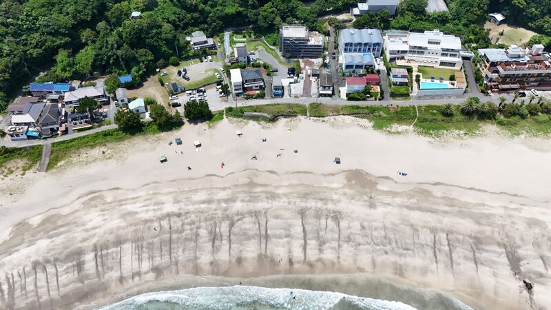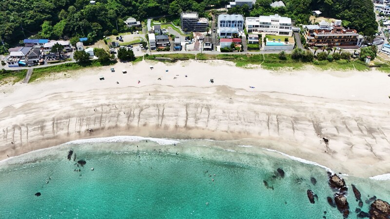 砂浜には岩場が点在しているが、大部分が砂で構成されているビーチのため、気を付けていれば岩で足を痛めることはないと思われる。