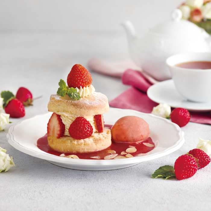 甘酸っぱいストロベリーエードソースが、ティーとの相性抜群です。