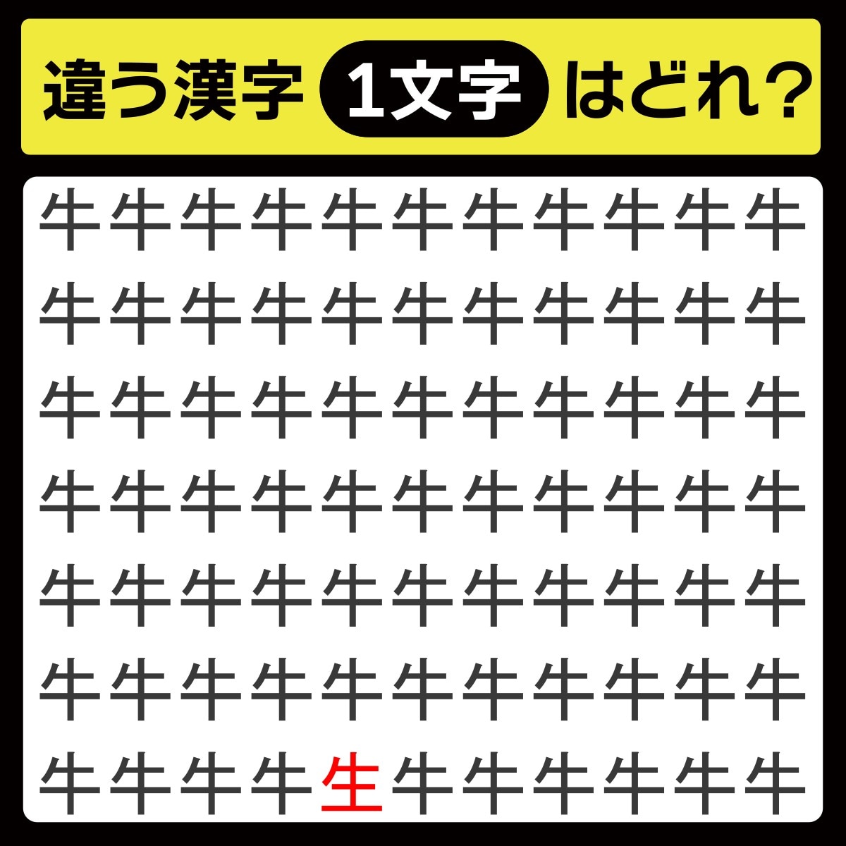 違う漢字は、下から1行目、左から5番目の文字でした!