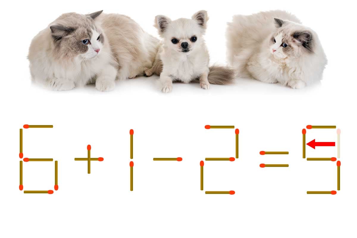 「3」のマッチ棒を1本移動させて「5」を作り「6+1-2=5」にする。※解答は複数ある場合があります。