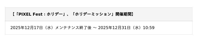 期間限定イベント「PIXEL Fest:ホリデー」開催!