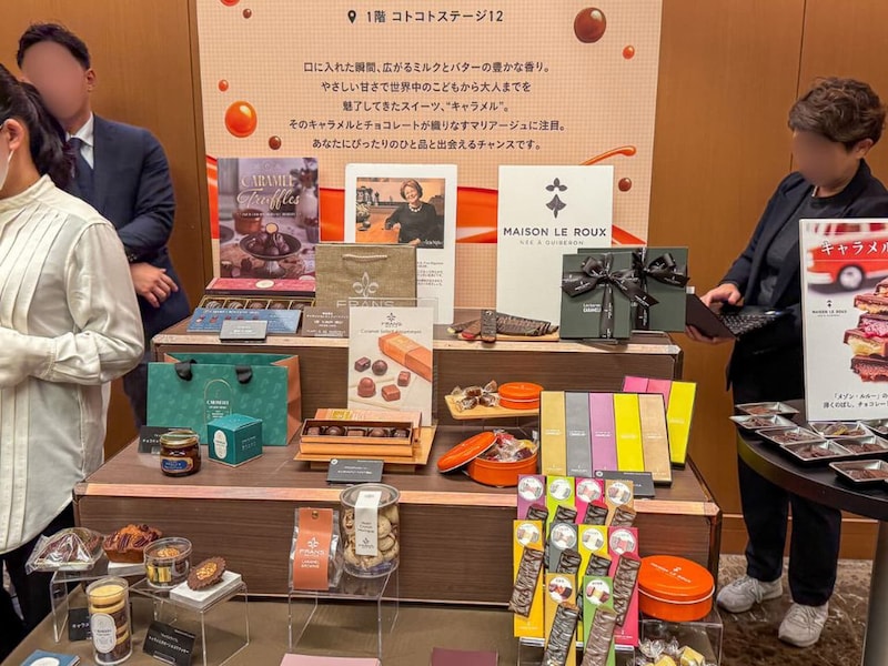1階コトコトステージでは、チョコレートとキャラメルのマリアージュを楽しめるアイテムが集合。キャラメルエカカオ、セントー、キャラメライフ、フランズチョコレート、メゾン・ルルーといった人気ブランドが登場します。