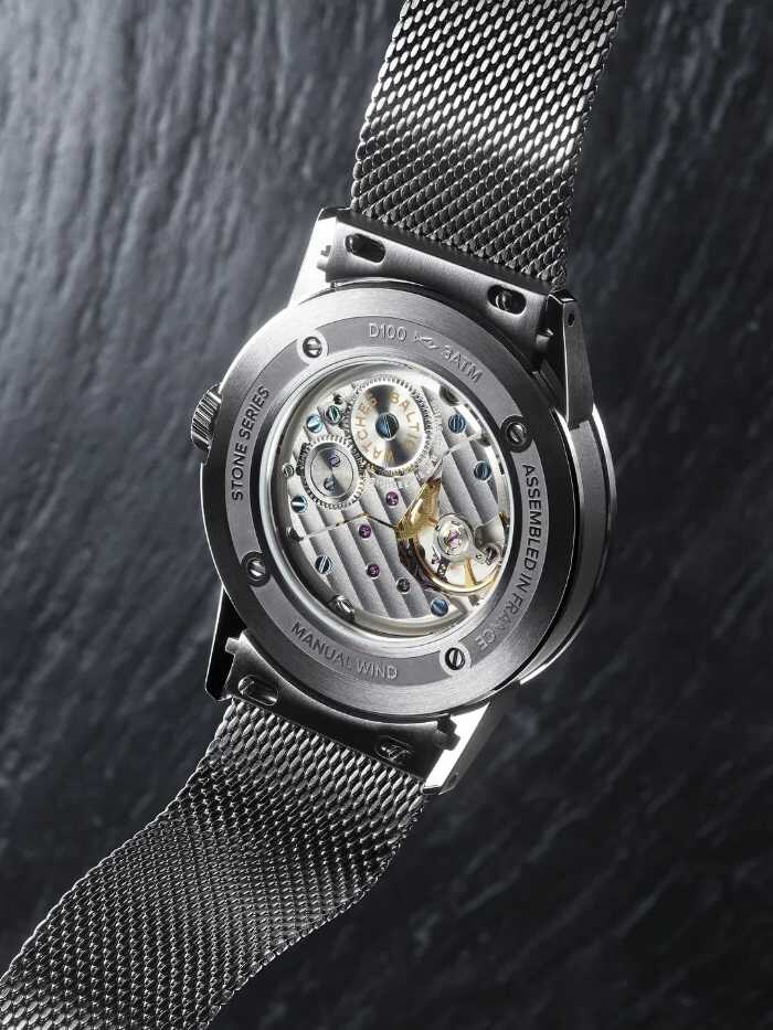 ムーブメントにはLa Joux-Perret製スイス手巻きキャリバーを搭載し、約50時間のパワーリザーブを確保。ブラックまたはキャメルのレザーストラップが、石の表情を美しく引き立てます。