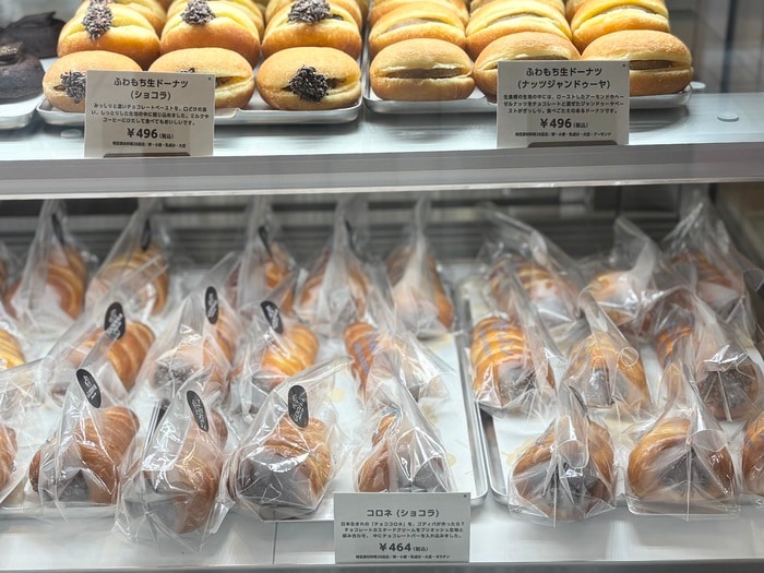 中央のショーケースの中には、種類豊富な「コロネ」や「生ドーナツ」、ひんやりスイーツ系のパンも勢ぞろい