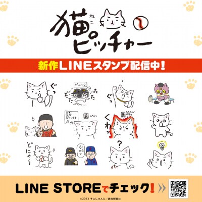 セロリーグの「ニャイアンツ」に所属している投手は、まさかの猫!?漫画家そにしけんじの代表作、読売新聞日曜版人気連載マンガ「猫ピッチャー」のLINEスタンプ最新作がインクルーズの販売アカウントより配信開始!ゆるくてかわいく描かれたキャラクター達に、癒されること間違いなし!是非、LINEスタンプでも「猫ピッチャー」の世界観をお楽しみください。