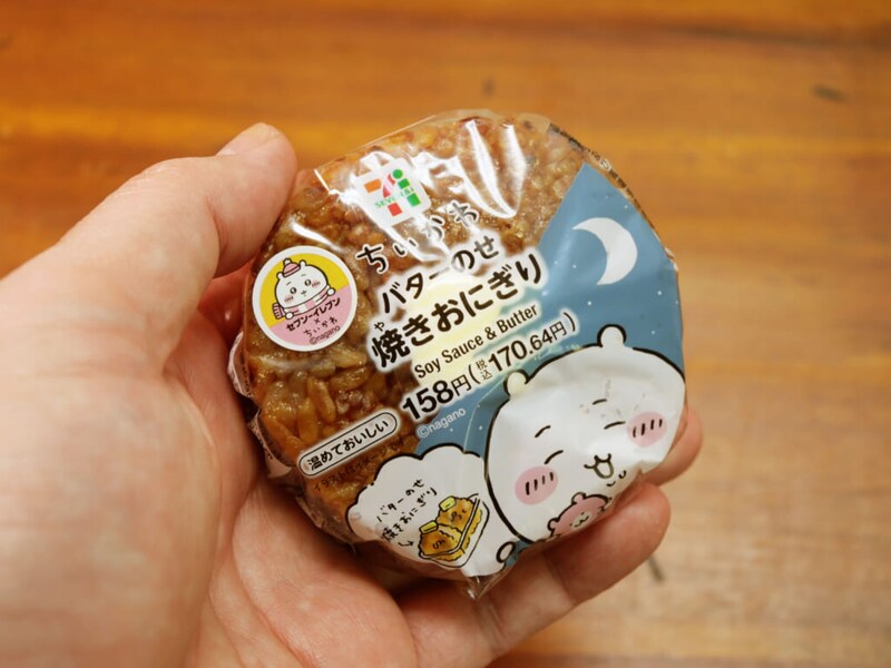 ちいかわファンでなくともおいしいグルメ、それが「バターのせ焼きおにぎり」。でも、ちいかわファンが食べれば、おいしさが心の中で増幅するのは言うまでもあません。ヤハ!