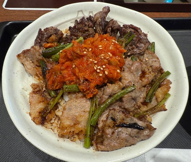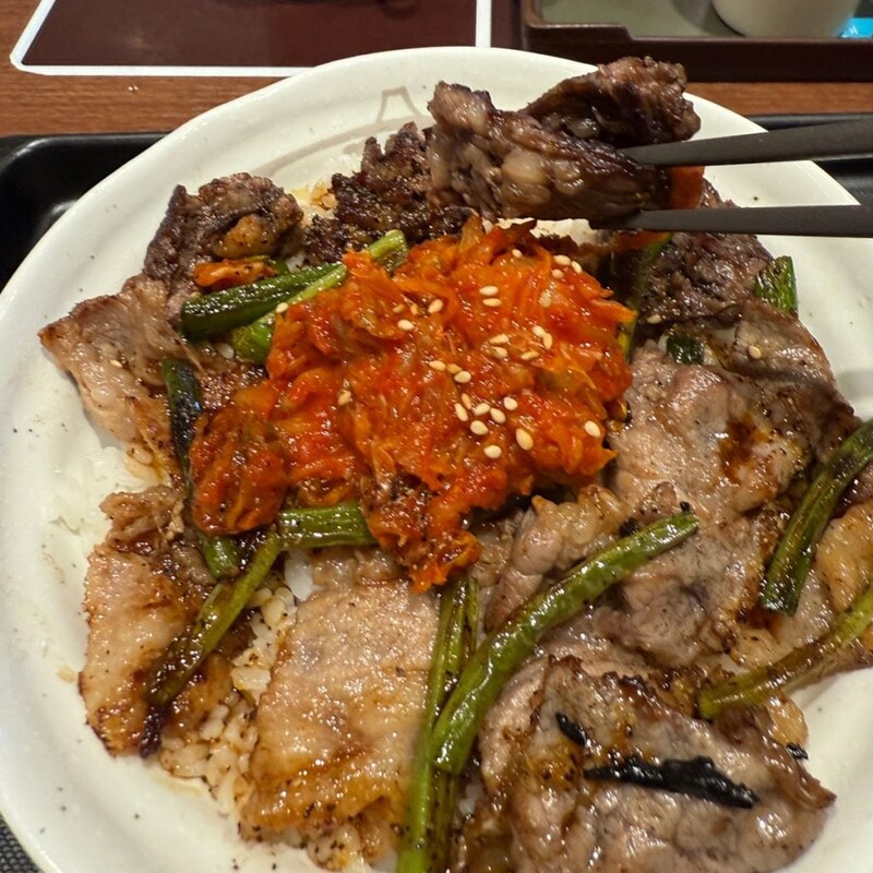 確かにウマいし、ニンニクの芽とキムチにもあっているのだが。合い盛りになっているカルビと比べ、丼に向いているお肉かというと、個人的には疑問符が。「にんにく醤油のソース」も若干しょっぱいかな?と。