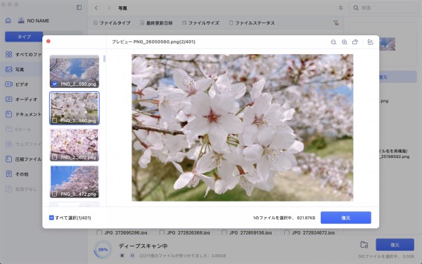 圧倒的な復元率: 独自のスキャン技術により、他ソフトで見つからなかったファイルも検出。