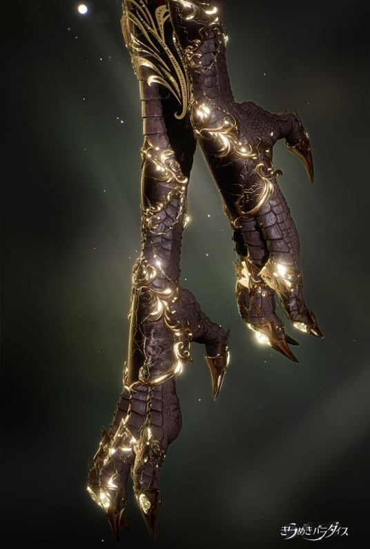 従来のハイヒール形態と、鳥類の骨格を忠実に再現した神鳥の足爪形態の両方を持ち、不死鳥の如く燃えるようなステップを刻むことができます。さらにホーム専用の鳥足形態による歩行動作を実装しました。一歩一歩が神話的な韻律を奏で、唯一無二の没入感をお届けします。
