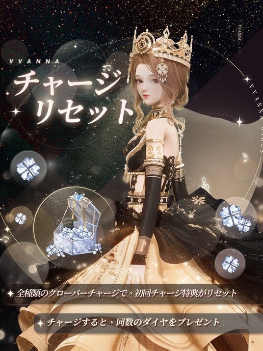 12月18日のバージョンアップデート後、全種類のクローバーチャージにおける初回チャージ特典がリセットされます!任意のクローバー数をチャージすると、同数のダイヤをプレゼント。このお得なチャンスをお見逃しなく!