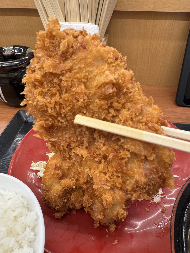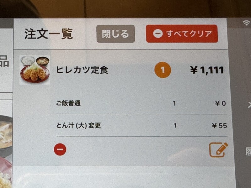 ということで、実際にかつやに行って豚汁を食べてみることにした。今回はヒレカツ定食をオーダー。豚汁はヒレカツ定食のなかに含まれているが、ナガノ先生が絶賛するほどの豚汁ということで、今回は豚汁を大サイズにしてみた。