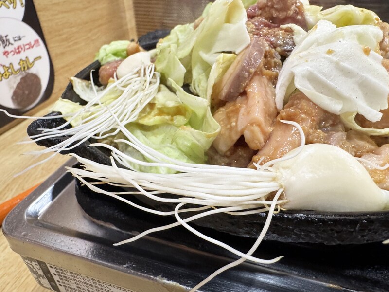 添えられているキャベツは鉄鍋のヘリに置いて焼く。