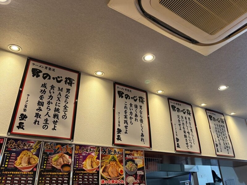 店内には「ラーメン男塾流 男の心得」なるパネルが貼ってある。