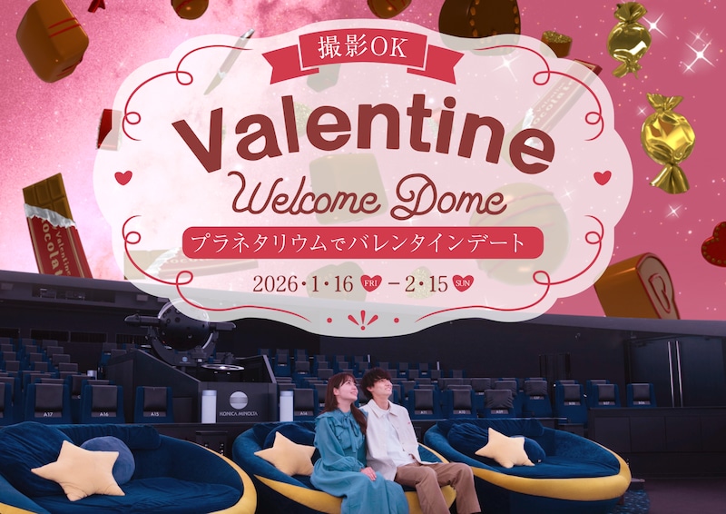 「コニカミノルタプラネタリウム」全5館にて、プラネタリウム本編上映前の待ち時間に撮影可能なウェルカム特別映像「バレンタインウェルカムドーム」が2026年1月16日(金)から2月15日(日)まで開催される。