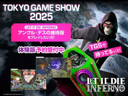 ガンホーは、2025年9月25日(木)から9月28日(日)に幕張メッセ(千葉県千葉市)で開催される「東京ゲームショウ2025」に出展しております。ガンホーブースでは、『LET IT DIE』シリーズでおなじみのキャラクター「アンクル・デス」が占拠したかのようなユニークなデザインのブースで、発表したばかりの『LET IT DIE: INFERNO』を世界最速でプレイいただけます。試遊いただくのは、「『LET IT DIE: INFERNO』アンクル・デスの接待版」です。今回は通常とは異なる難易度でお楽しみいただける特別バージョンをご用意いたしました。