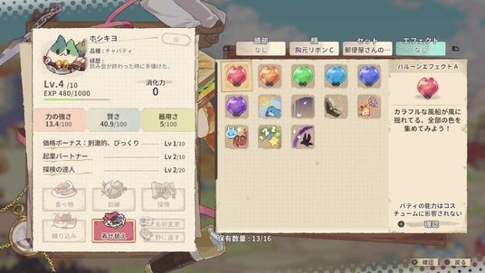 レベル10に達したパティは、経験値を3,000獲得するごとに、最大レベルになっていない特性レベルがランダムで上昇するようになりました。これにより、合成に頼らない新しい育成ルートを提供します。