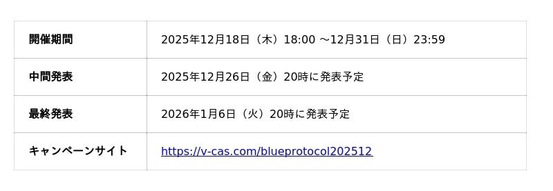 株式会社アイブレイド(本社:東京都豊島区 代表取締役:妻木 泰夫)が運営するVTuberキャスティングサービス「ぶいきゃす」(https://v-cas.com/)は、X.D.Globalが提供するアニメ調MMORPGゲーム『ブループロトコル:スターレゾナンス』のリリースを記念した配信イベント「惑星レグナスで絆を紡ぐ、ぶいきゃす開幕祭」を、2025年12月18日(木)18:00 ~ 12月31日(水)23:59の期間で開催することをお知らせいたします。