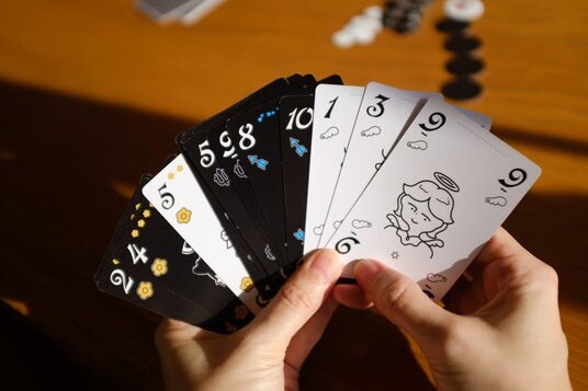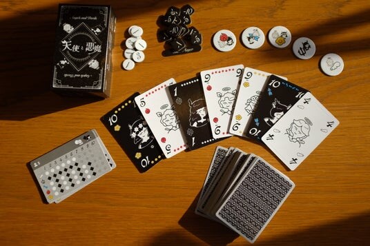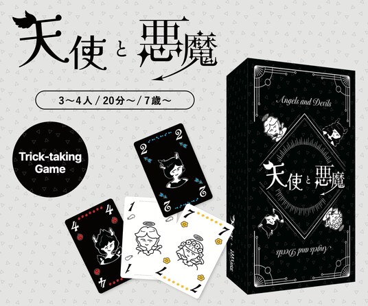 「天使と悪魔」は、1人1枚ずつカードを出しあって強さを比べるミニゲームを繰り返す、「トリックテイキング」カードゲームです。ルールはとってもシンプル。「悪魔カード」を相手に押し付けて、自分のライフを守り抜くだけ! タイミング良く「天使カード」を集められれば、ライフが回復することも。あなたは天使を味方につけられるか?