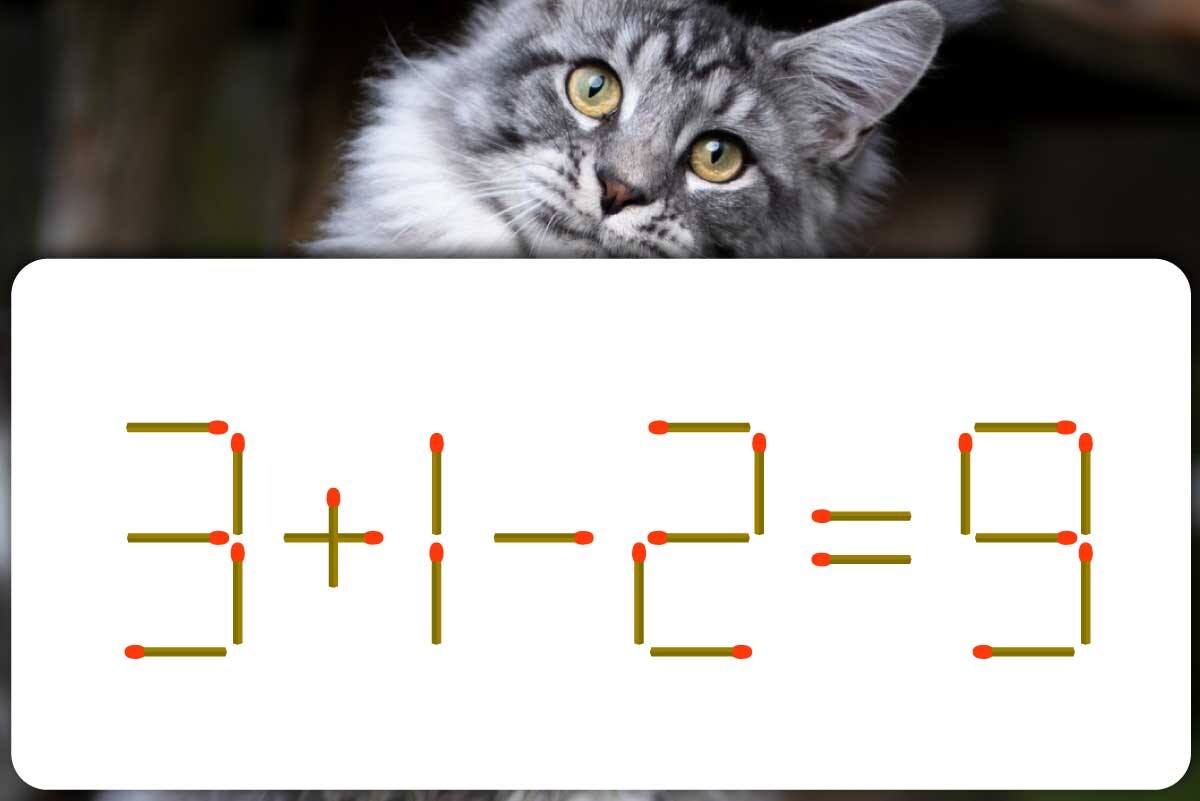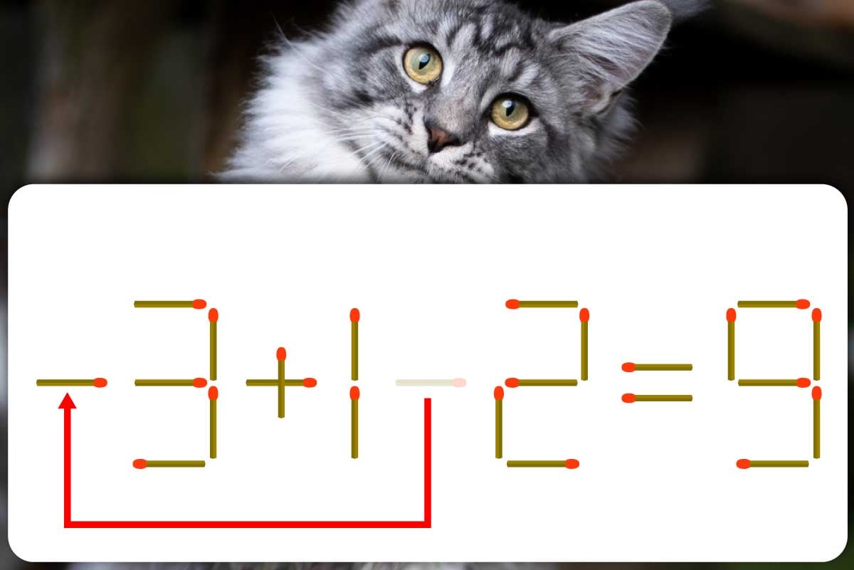 「-」のマッチ棒を「3」の前に移動させて、「-3+12=9」にする。※解答は複数ある場合があります。