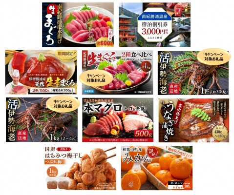 <那智勝浦町のふるさと納税ラインナップとキャンペーン対象お礼品の一例>