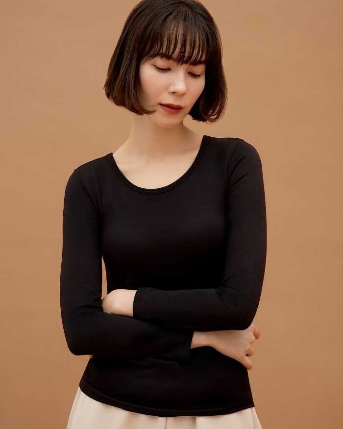 クルーネックロングとタンクトップ、どちらも日常からリラックスタイムまで幅広く使える万能アイテム。寒さに負けず、美しいシルエットで冬を楽しんでみませんか?