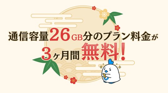 通信容量26GB分のプラン料金が3ヶ月間無料!