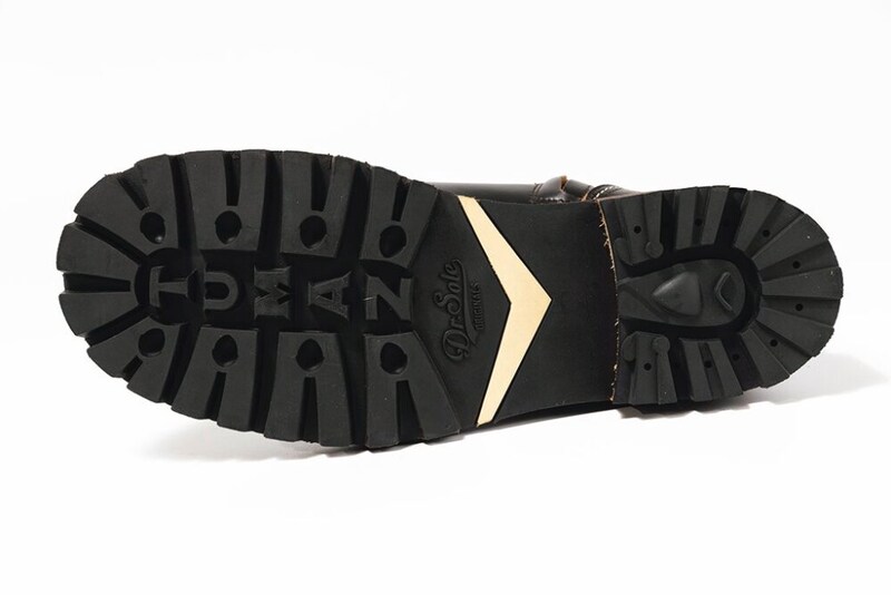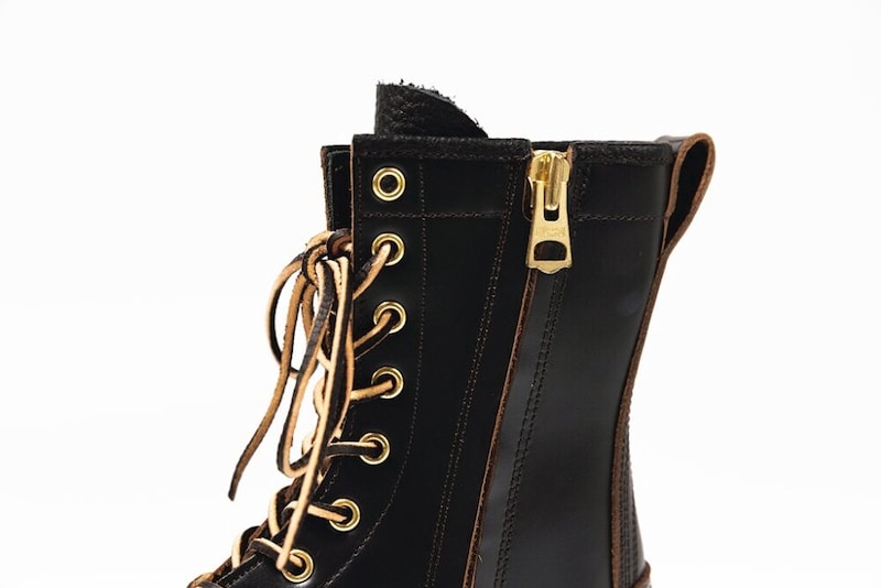 シャフトの内側にファスナーを装備するのでヒモをしっかり閉めても着脱が容易。グッドイヤー製法を採用し、アウトソールにはクッション性/グリップに優れたDr.Sole製「TUMAZ」を装備。内側のネームは、着用者の履き初めの年月を記録できるデザイン。エイジングにフォーカスしたSPPNらしいディテール。