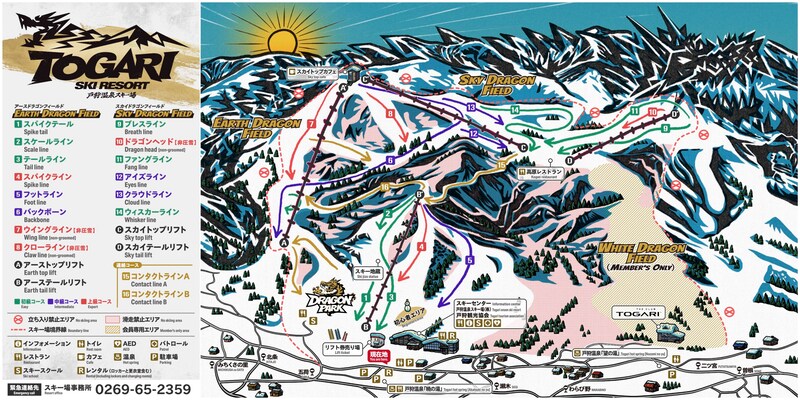 一番下のこれまでの五本松コースが「ドラゴンパーク」として本格パークに生まれ変わります。15mくらいの大きなキッカーやジブアイテムを作ります。それとコブが連なるダイナミックコースが、「スパイクライン」と名前を変えて日本最長300mのモーグルコースとなります。これまで2レーンだったモーグルコースが4レーンに増え、半分は選手用、半分は一般開放となります。