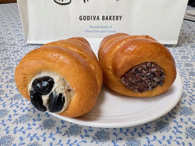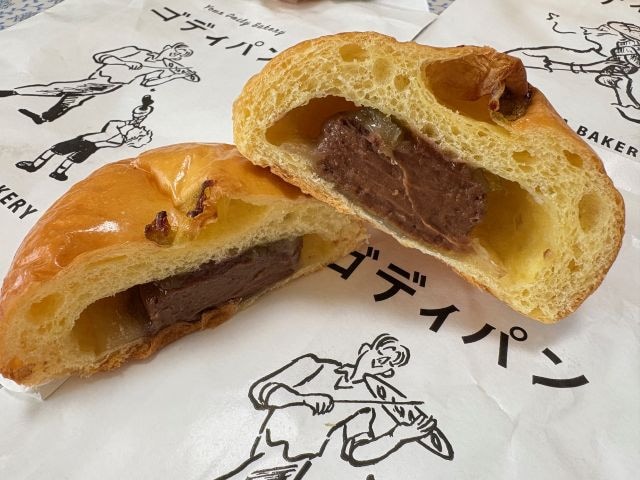 「ショコラティエのカレーパン」は、カカオのほろ苦さとスパイスの香りを楽しめるゴディバならではの焼きカレーパン。あとからじんわり辛さがやってきます。