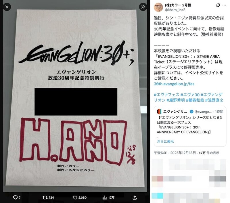 — EVANGELION:30+; 30th ANNIVERSARY OF EVANGELION (@eva30th_fes) December 18, 2025