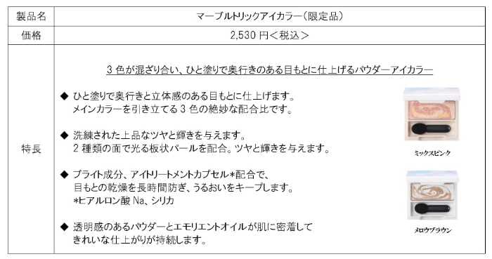 今回登場するのは、「2026年春限定メイク」全5品目・6品種。価格帯は990円~3,300円。2026年2月17日(火)より、通信販売および直営店舗にて数量限定発売となります。