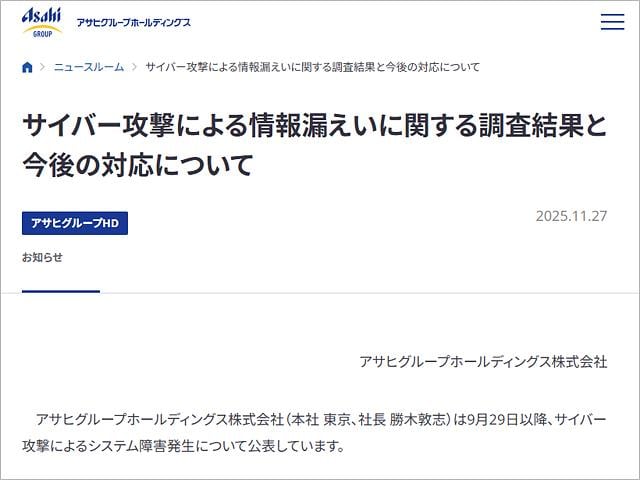 アサヒGHDへのサイバー攻撃では、システム障害発生から1週間後、ロシアに拠点があるとみられる「Qilin(キーリン)」と名乗るハッカーグループがダークウェブ上に犯行声明を出した。