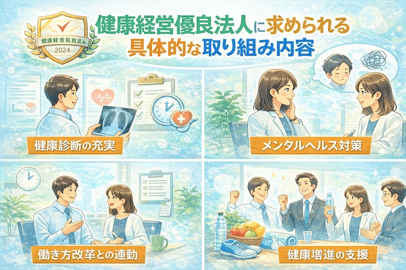 健康経営優良法人に認定される企業は、少なくともこれらの施策を「形式だけでなく、実態として」運用していることが求められているのです。