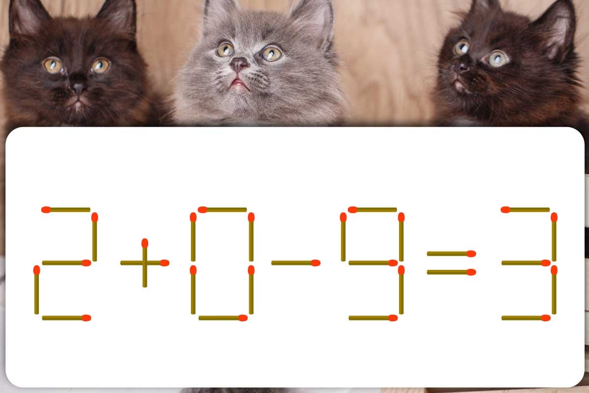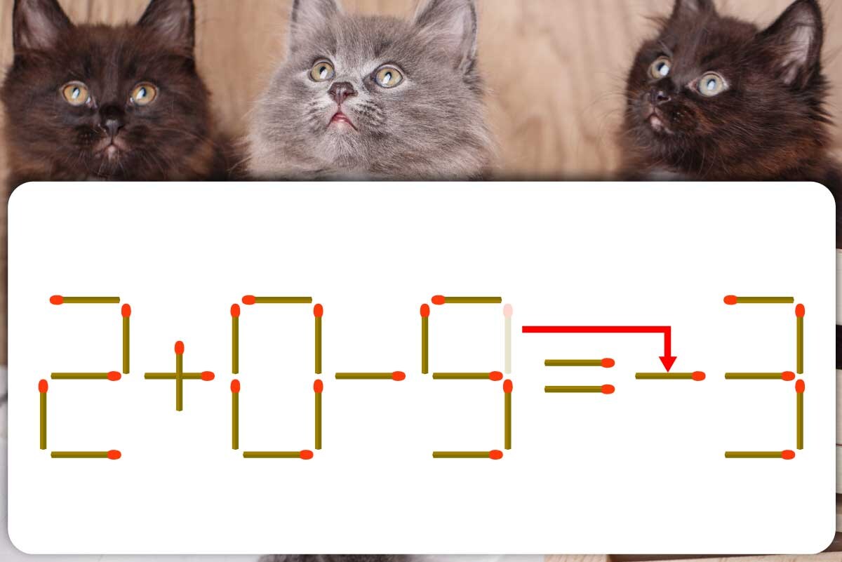 「9」のマッチ棒を1本、「3」の前に移動させて「-」を作り「2+0-5=-3」にする。※解答は複数ある場合があります。