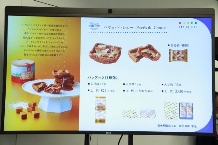 「フランス産の完全天日塩を使用しており、そこまで甘くなく、2枚・3枚と楽しんでいただける焼き菓子になっています。実は社内の方では、試食した人間からは(紅茶やコーヒーなどより)お酒の方が合うというようなお声もたくさんいただいている商品です。」