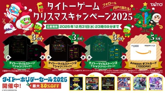 ホリデーセールの開催期間中、「タイトーゲーム」公式X(旧Twitter)アカウントにて、Amazonギフトカードやグッズが当たる2つのキャンペーンを実施します。詳しくは公式Xをご確認下さい。