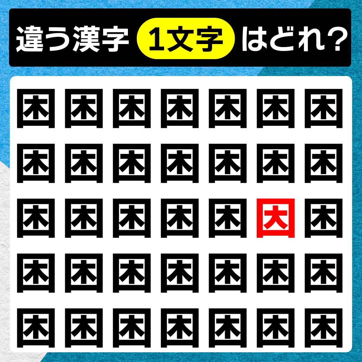 違う漢字は、上から3列目、右から2番目の文字でした!