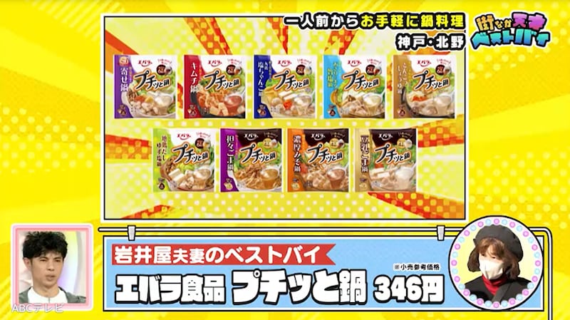 天才ピアニストが最初に声をかけたのは、子育てを終えて広島県から遊びに来ていたご夫婦。ご夫婦のベストバイは、「1人ずつ違う味を食べたい」ときに重宝している、エバラ食品の鍋用調味料・プチッと鍋シリーズです。プチッと鍋は通常全9種類あり、公式ホームページで600件以上のレシピを公開中。鍋だけでなく、炊き込みごはんや炒め物などにも使えます!