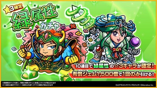 ◆「☆3確定 緑属性ガチャ」を追加!