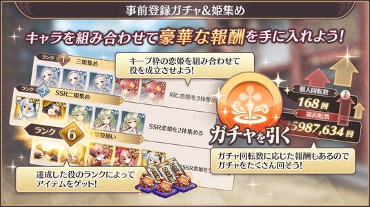 ■事前登録ガチャ開催!新機能「姫集め」が登場!