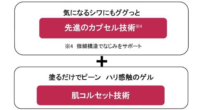2026年1月21日発売の「プリオール薬用リンクル美コルセットゲルn(医薬部外品)」は、当社初となる先進のカプセル技術※4を搭載。