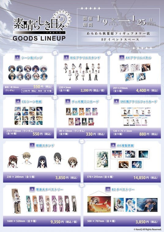 大網株式会社(本社・東京都文京区)は、自社が運営するホビーショップ「あみあみ」にて、『素晴らしき日々~不連続存在~ POP UP STORE in あみあみ秋葉原フィギュアタワー店』を2026年1月9日(金)~1月25日(日)の期間で開催いたします。