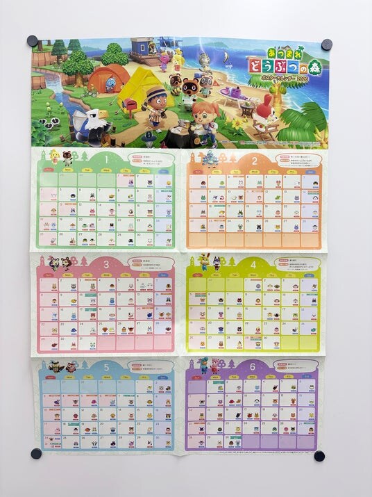 現実世界の祝日・主な年中行事の日にちも入っていて、普段使いにもバッチリ。壁に貼るのもよし、折りたたんで手元に置くのもよしの2WAY仕様となってます。